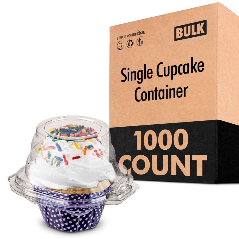 Stock Your Home Individual Plastic Cupcake Containers Disposable with Connected Airtight Dome Lid (1000 Count) Clear Single Cupcake Container, BPA Free