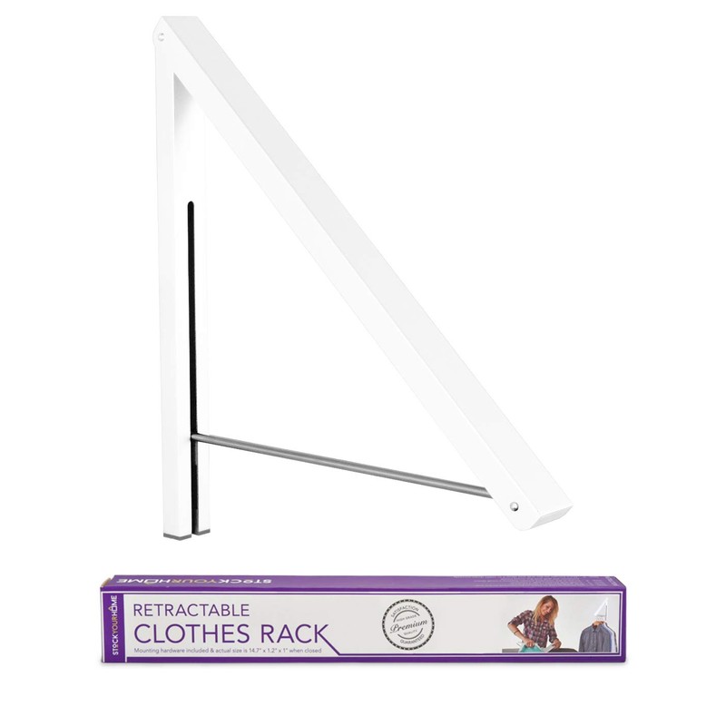Stock Your Home Retractable Clothes Rack, Wall Mounted Laundry Drying Racks, Folding Wall Mount Clothing Hanger for Guest Room, Collapsible Hangers, Hanging Space-Saver - White (1 Pack)