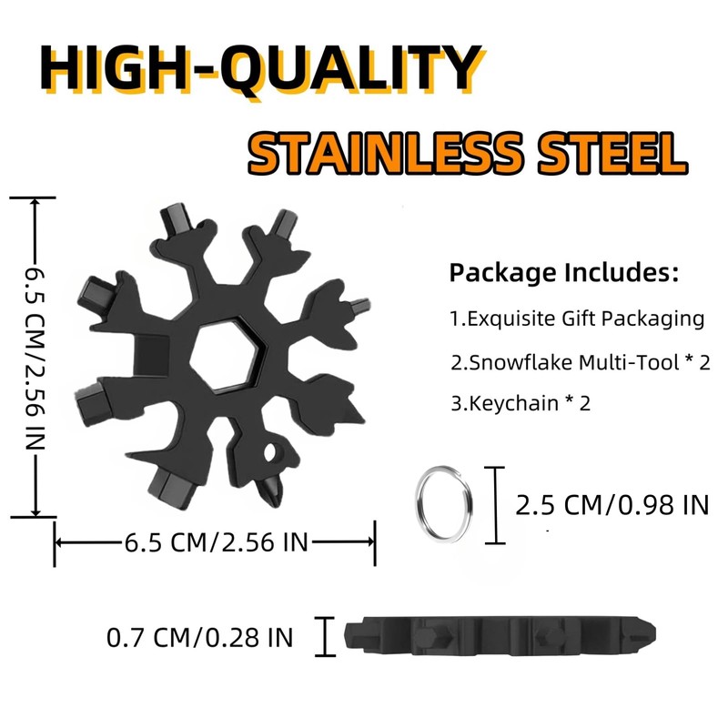 - 18-in-1 Multitool: The snowflake multitool includes 18 kinds of functional tools, such as bottle opener, flathead screwdriver, Phillips screwdriver, hex wrench, flathead screwdriver, hex wrench, can opener, etc. Snowflake tools are suitable for various occasions. Snowflake tools can also be used to repair skis, bicycles, open beer bottles, open boxes for express delivery, toys, screw tightening, DIY.