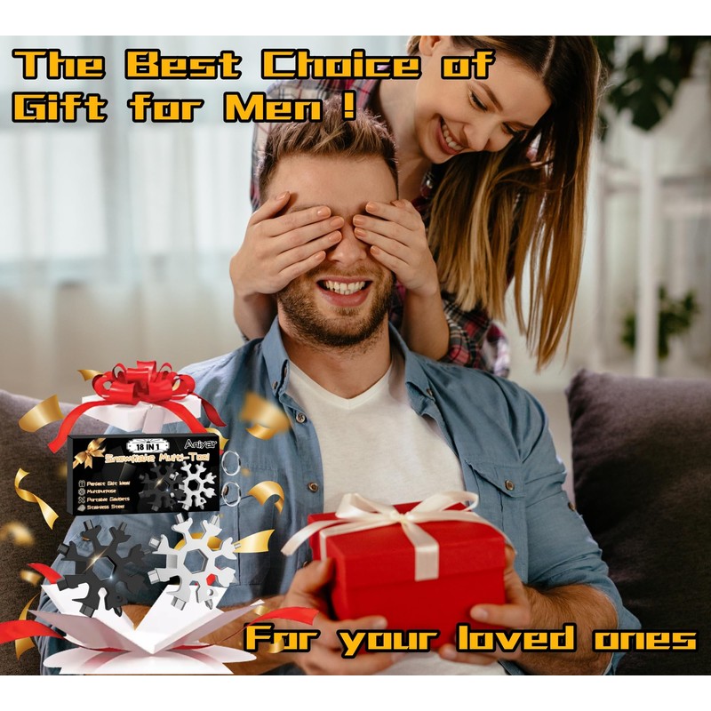 - Novelty Gift Ideas, Gift Wrap: As far as cool new gadgets are concerned, Aniyar snowflake-shaped multitool with special design gift wrapping, unique gifts for men, women, father, mother, dad, mom, handyman, boyfriend, him, guy teenager boys girls, adults, husband, wife, brother. Cool Holiday gift guide for Valentine's day, birthday, Father's Day, Mother's Day, Christmas gifts stocking stuffers.Funny gifts for men women who have everything. White Elephant Gifts
