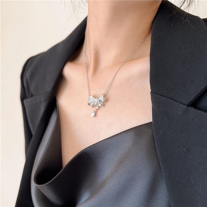- BOW NECKLACE FOR WOMEN: The butterfly pendant necklace comes with small shinny rhinestones. The pendant of the bow necklace features a classic ribbon bow studded with drop rhinestones, allowing it to shine in both light and sunlight, inadvertently attracting others' attention.