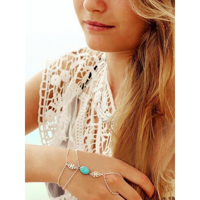 - LAYERED BRACELETS:chain bracelets paired with turquoise and vintage flower,perfect to pair with boho dress.