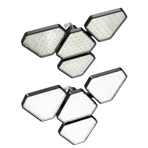 STODER Garage Lights Ceiling LED, Adjustable Angles, 120W 15000 Lumens, 6500K Daylight, Deformable Garage Ceiling Light, E26/E27 Base, Suitable for Garage, Shop, Basement, Workshop (2 Pack)