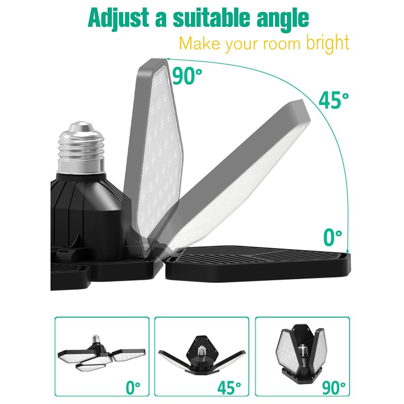 • Easy Installation with E26/E27 Base: Designed for hassle-free setup, these LED garage lights fit standard E26/E27 sockets. No tools, wiring, or professional help required—just screw it in like a regular bulb. The deformable design allows it to be folded compactly for easy storage or relocation.