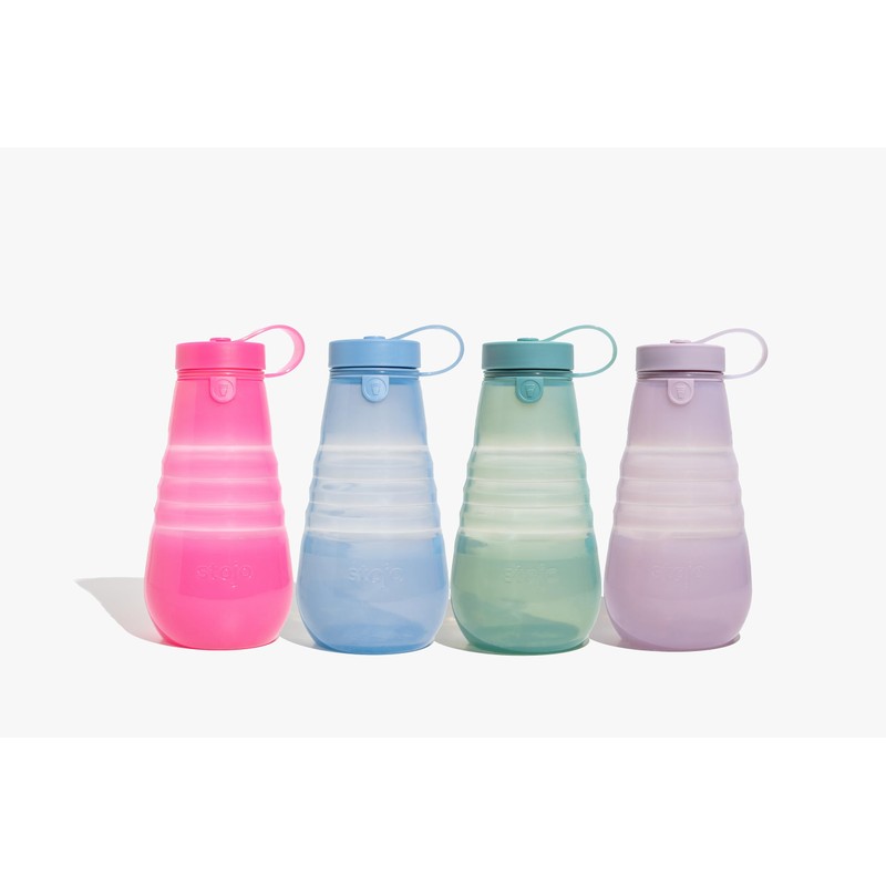 - Stay hydrated effortlessly with the Stojo collapsible water bottle. Collapse it down to just 3.3 inches when empty and attach it to your bag with ease and its see-through design allows you to see your beverage inside - great for those that like to add a little flair to their drinks!