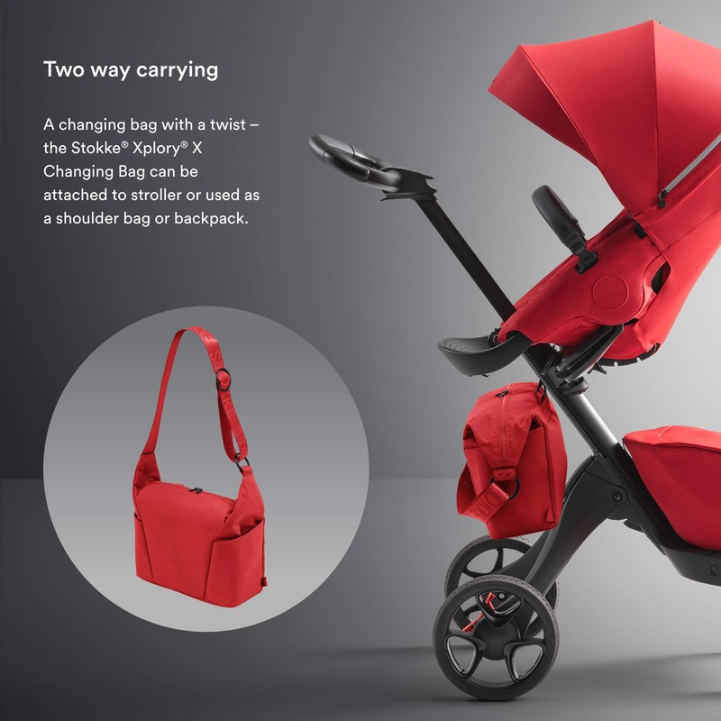 - CHANGING BAG - The Stokke Xplory X Changing Bag attaches to your stroller, so you’re always prepared on the go. Foldable changing mat & detachable pouch bag included.