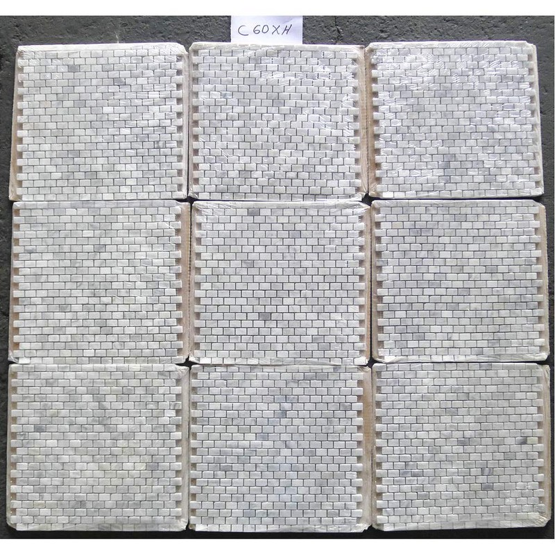 - Premium Grade White Carrara Marble Minibrick Mosaic Tile. Italian Bianco Carrera White Venato Carrara Honed 5/8 x 3/4 Brick Mosaic Wall and Floor Tiles are perfect for any residential / commercial projects. The Carrara White Marble Mini Brick Mosaic Tile can be used for kitchen backsplash, bathroom flooring, shower surround, dining room, entryway, corridor, kitchen backsplash, spa, etc.
