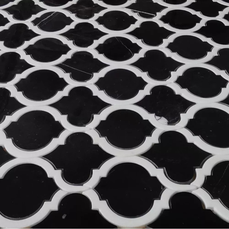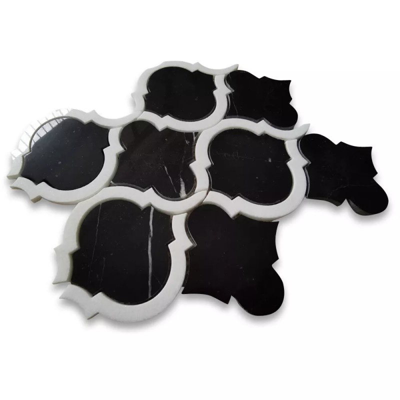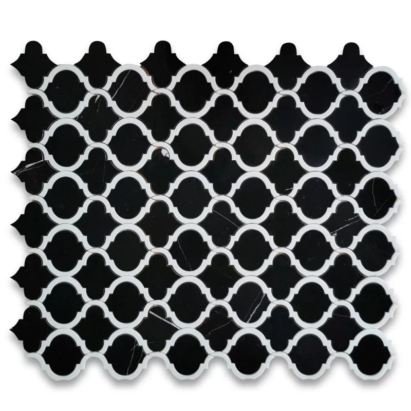 Stone Center Online N89AXP Nero Marquina Black Marble Waterjet Arabesque Lantern Tile Polished