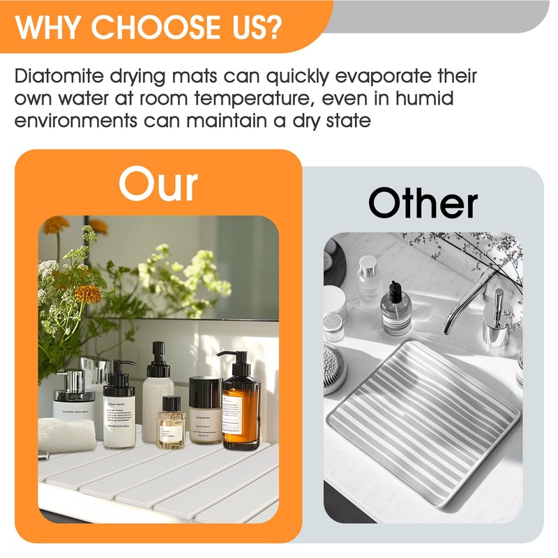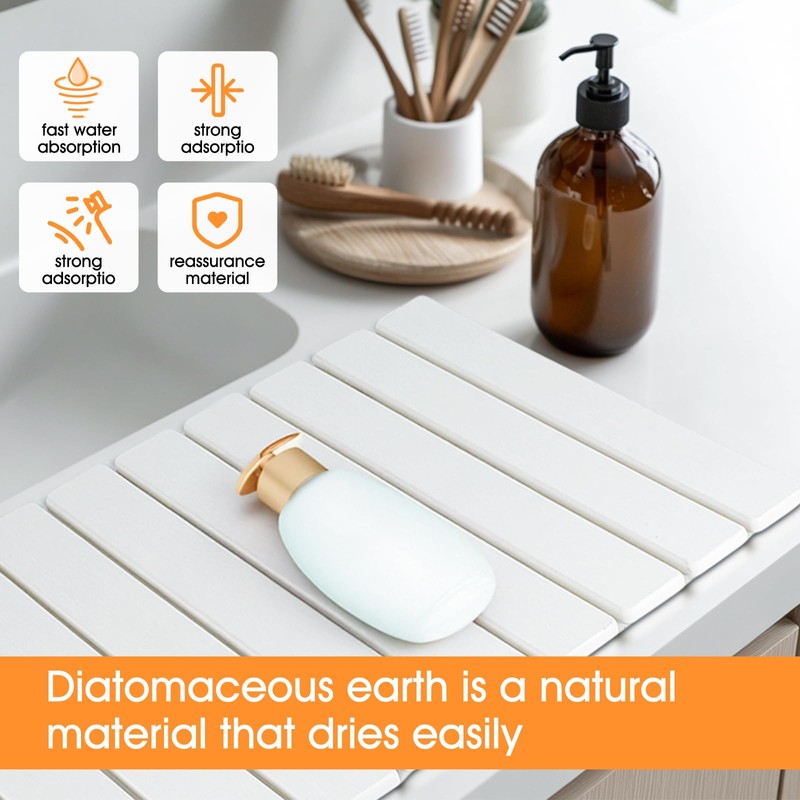 • [Premium Quality and Design] Crafted from natural diatomaceous earth, this stone dish drying mat features a clean and simple design. It's non - toxic, super absorbent, and instantly dries your dishes. The foldable design allows for easy storage when not in use, and the anti - slip pads ensure safety.