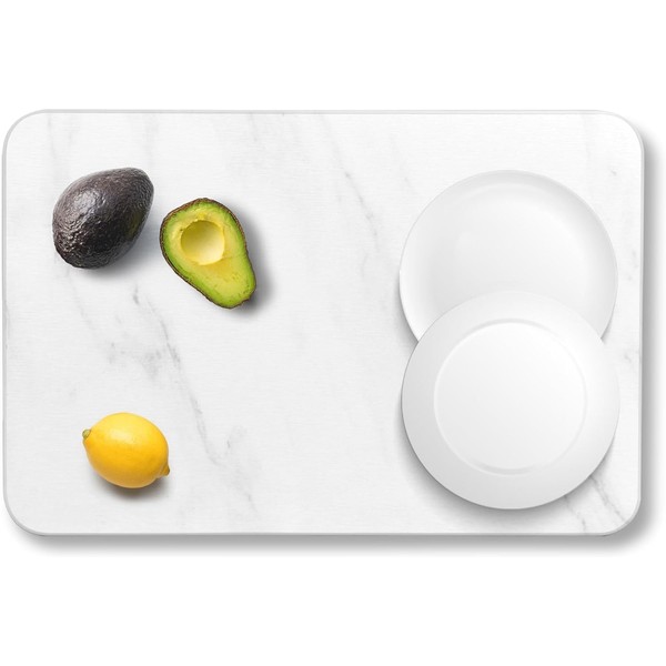 Stone Dish Drying Mats for Kitchen Counter, 21.5"(L)×15.8"(W), Large Quick Dry Super Absorbent Dish Drying Mat, Eco-Friendly Diatomaceous Earth Mat with Non-Slip Pad for Dishes Bottles(White Marble)