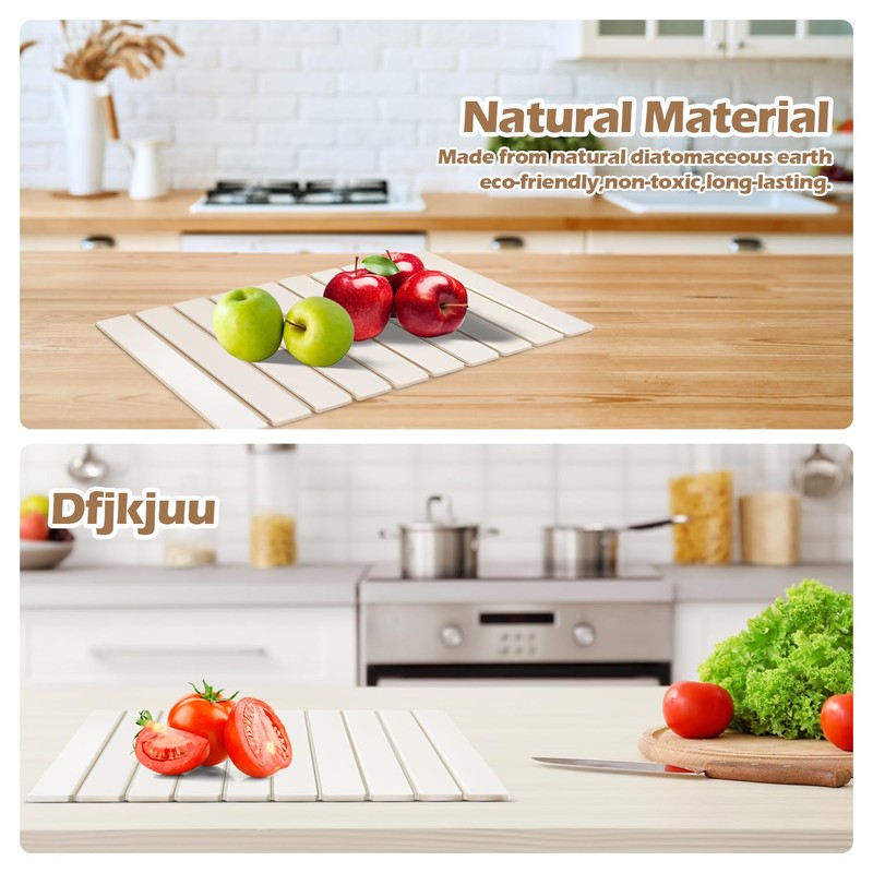 Stone Drying Mat for Kitchen Counter,Kitchen counter stone dish dry mat, 24 "(L) x 16" (W) quick-drying absorbable foldable eco-friendly diatomaceous earth vegetable dry mat, stone dish dry mat