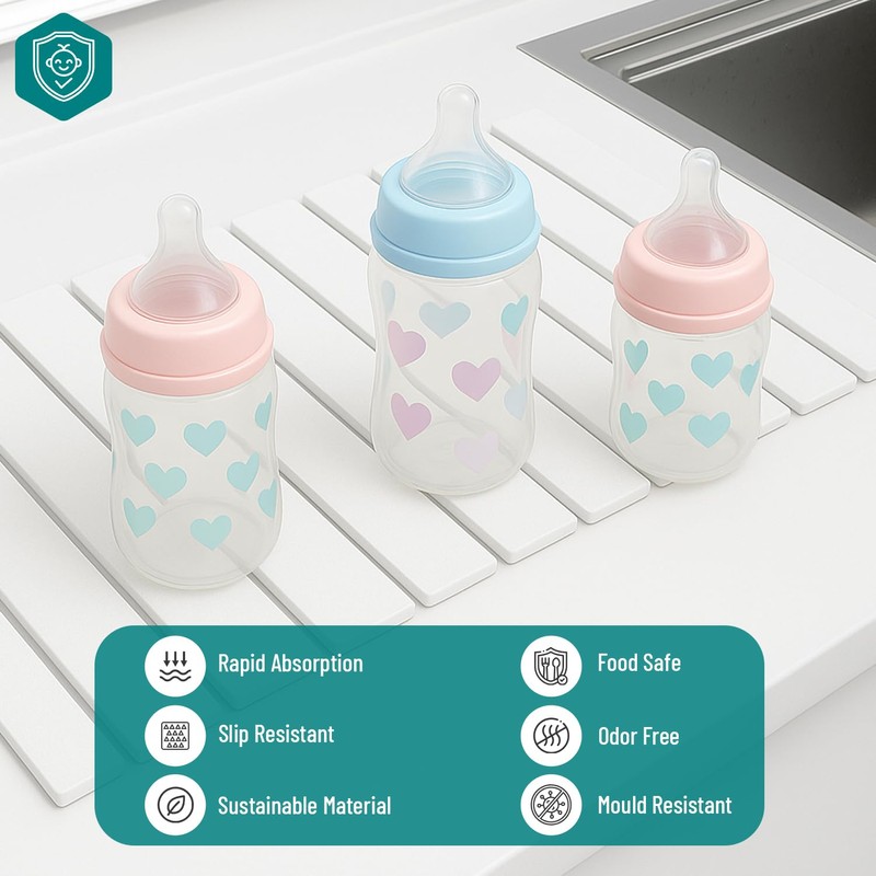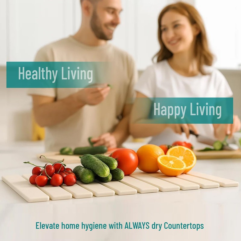 - FOOD-GRADE ECO-FRIENDLY MATERIAL: Made from food-grade porous diatomaceous earth, Ambrint dish drying mat for kitchen counter is 100% natural, odorless, and heat-resistant. Perfect for health-conscious families who want a sustainable, toxin-free kitchen accessory that aligns with an eco-friendly lifestyle.