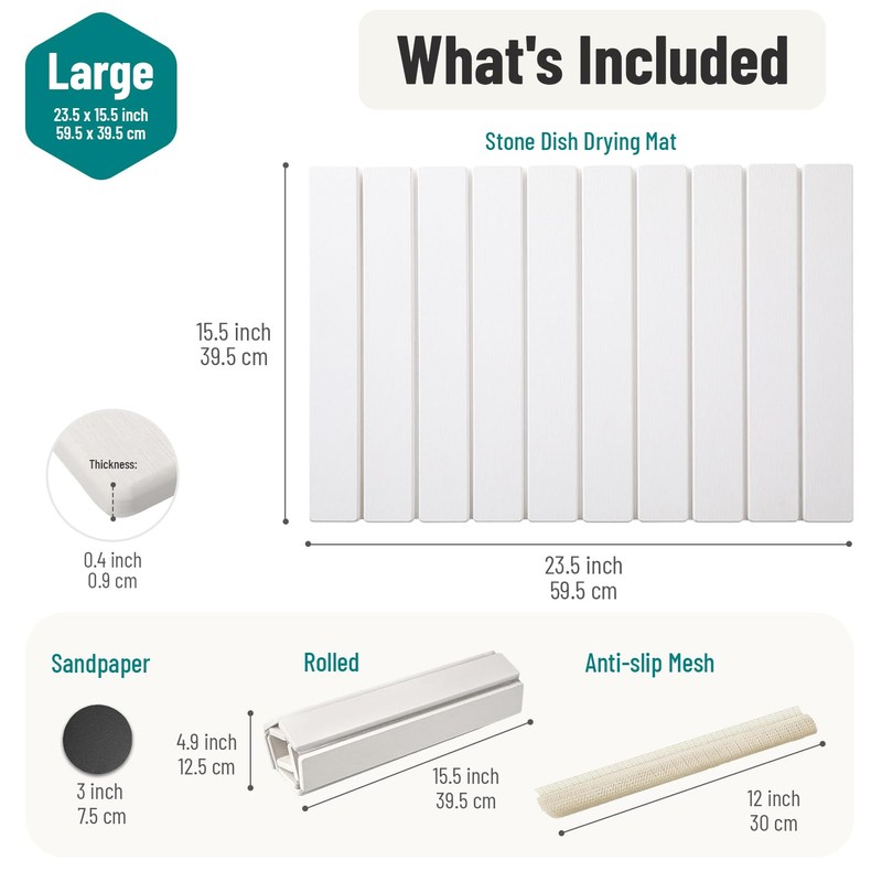 - TWO SIZES FOR EVERY KITCHEN: Available in Medium (for compact kitchens & RVs) and Large (for spacious countertops), Ambrint Stone Drying Mat accommodates all dishwashing needs. The larger size offers ample space for big serving trays, pans, and multiple dishes, making it a versatile drying solution for any home.