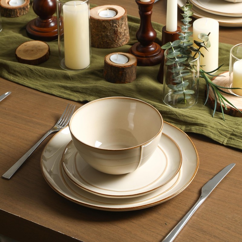 Stone Lain Infinity 24-Piece Dinnerware Set Stoneware, Plates and Bowls Set, Dishwasher and Microwave Safe, Dish Set for 8, Beige