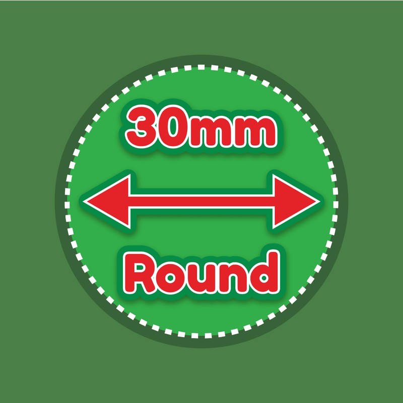 - 144 stickers printed on sticker paper with round 30mm circle shaped stickers.