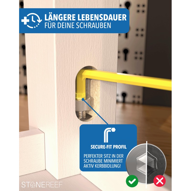 - Strong material: despite its compactness, the high-quality Allen keys offer a robust construction that allows precise adjustments and repairs in a variety of working environments