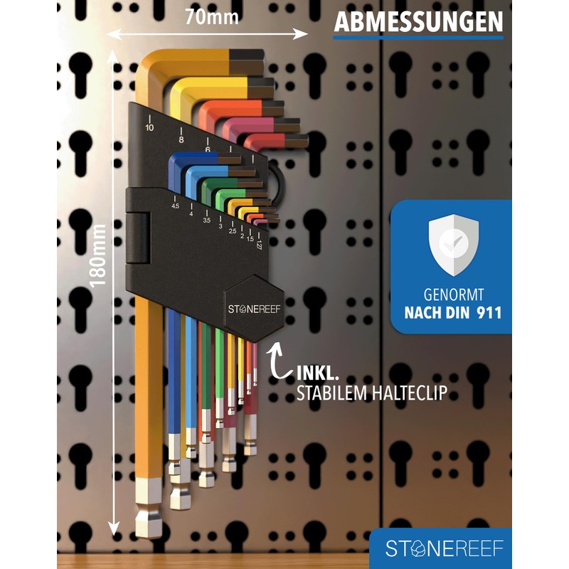 STONE REEF Allen Key Set 13 Pieces [incl. Ball Head] - 1.27-10 mm Hexagonal Multicolour Set, Hex Key Set for Craftsmen, Allen Key Set