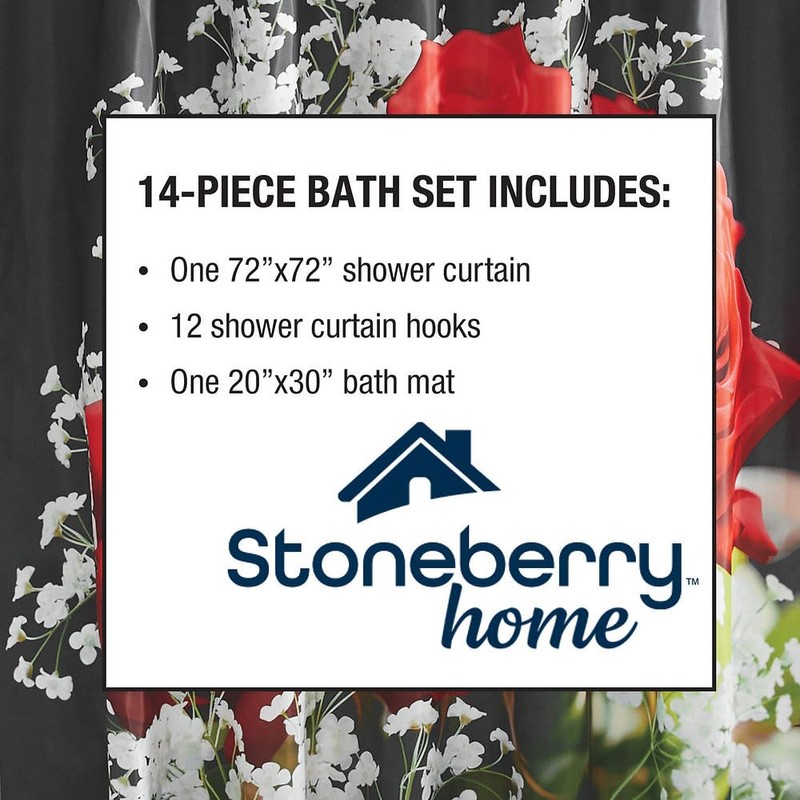 Stoneberry Home® 14-Piece Shower Curtain Sets Polyester,Memory Foam Rose
