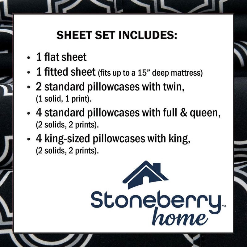 Stoneberry Home Geometric Microfiber 6-Piece Sheet Set, Soft Mircrofiber Fabric