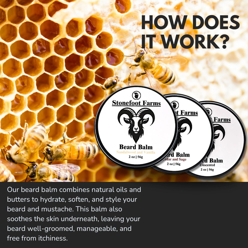 Stonefoot Farms Sandalwood & Vanilla Beard Balm for Men - Natural Beard Wax for Men with Argan & Jojoba Oils, Beard Butter for Men Deep Moisture & Strong Hold, Beard Softener for Men Course Hair, 2 oz