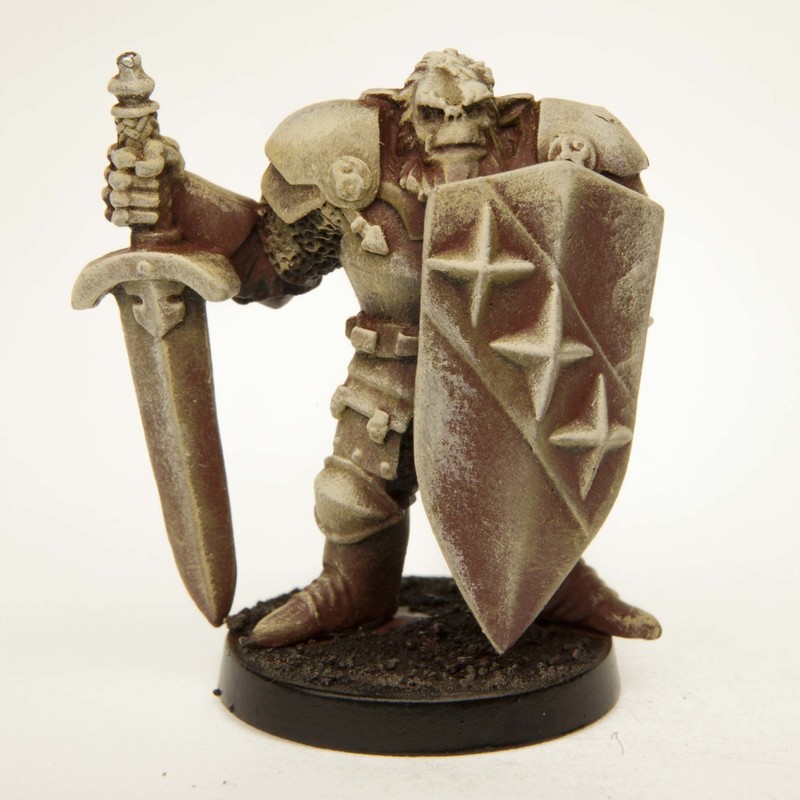 - Miniature could be used as a Paladin, Fighter, Warlord, War priest, Warrior. This Half-Orc Warrior is equipped with large broad sword, large kite shield, chain mail, and heavy plate armor ( Shield comes unattached and will need to attached by hobby glue) This figure comes in 2 parts.