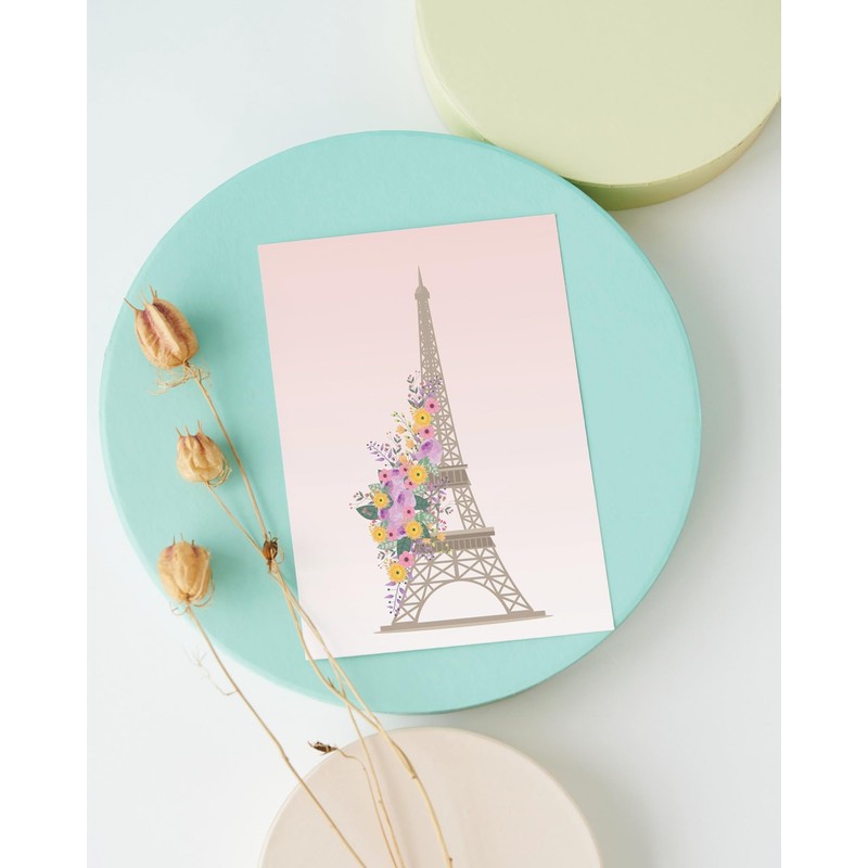 Stonehouse Collection | Floral Eiffel Tower Note Card | Paris Note Cards | Art Deco Style | 10 Pack