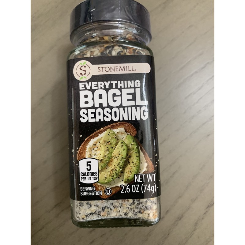 Sprinkle our ALDI Fan Favorite, Stonemill Everything Bagel Seasoning, on just about anything, from popcorn to avocado toast, french fries, salad, and even roasted veggies. Try this delicious blend of sesame seeds, sea salt, minced garlic, minced onion, black sesame seeds, and poppy seeds.