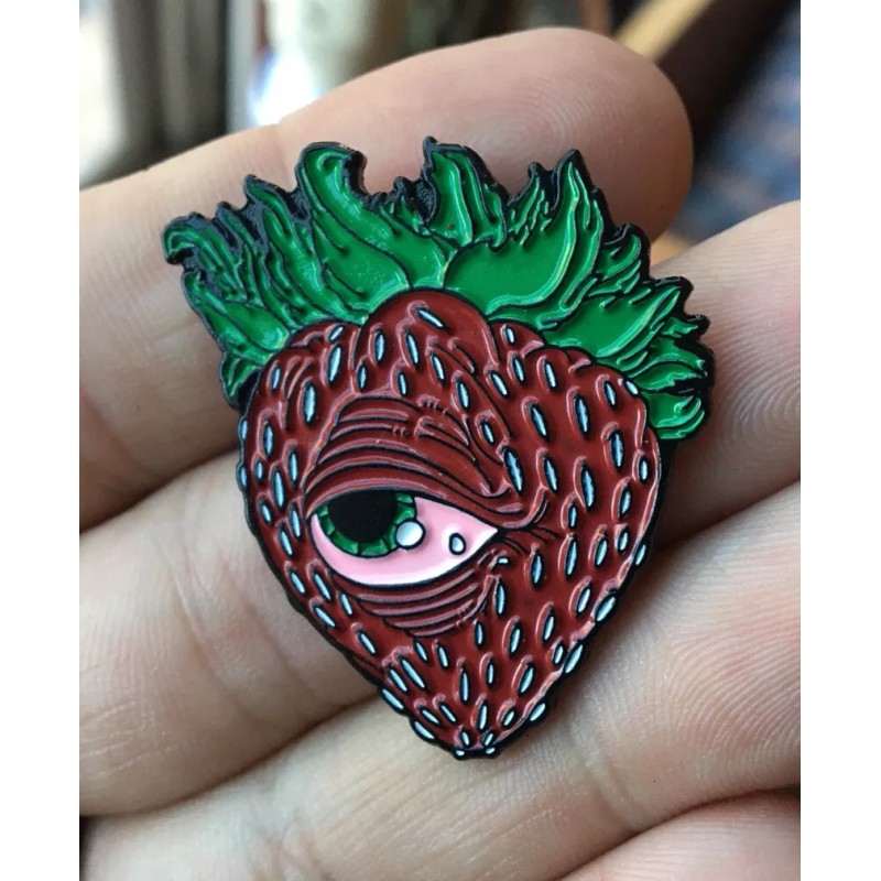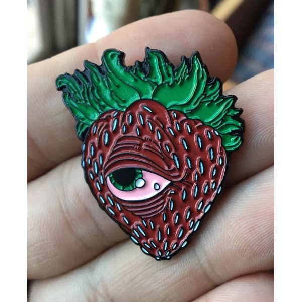 Stoner Strawberry Eye enamel pin 420 710 fruit skate hat lapel bag mohawk punk