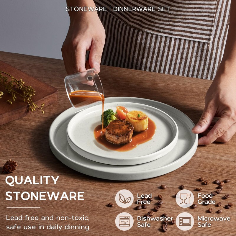 - Durable & Non-Toxic: our dinner set is made of natural clays fired over 2464℉ for 13 hours, gives it greater hardness and durability, also lead free and nontoxic, safe for serving hot and cold foods