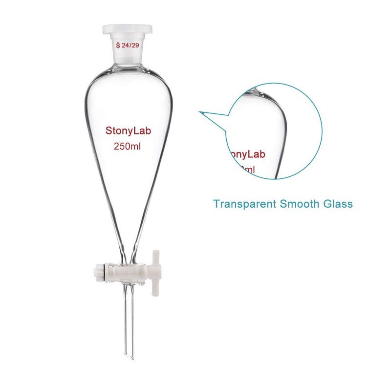 SKU: XL-815062 Why Choose **StonyLab**? 1\. The StonyLab means high-quality products for reasonable prices. 2\. We boast excellent customer service with a high satisfaction rating, with our team of representatives ready to assist you Monday to Friday, from 9:30AM to 5:30PM Eastern Time. 3\. We pack and ship your orders directly from our US-based warehouse within 24 business hours, and tracking information will be provided to you as soon as it's available. StonyLab Borosilicate Glass Conial Separatory Funnel 250mL with 24/29 Joints and PTFE Stopcock