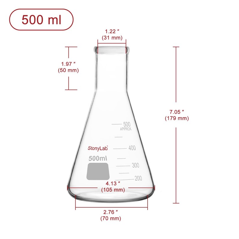 • Double bottle set: contains 2 Erlenmeyer flasks with a capacity of 500 ml each