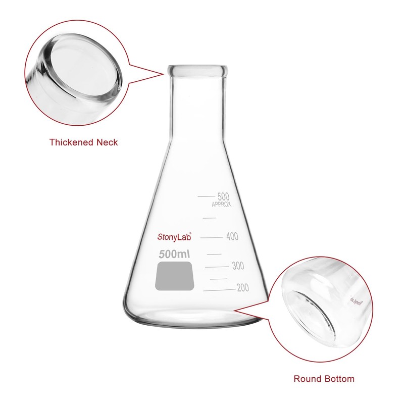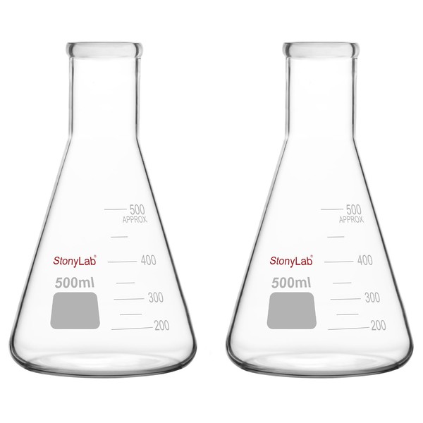 stonylab Erlenmeyer Flasks, Pack of 2, 500 ml, Narrow Neck, Heavy-Walled Boro...