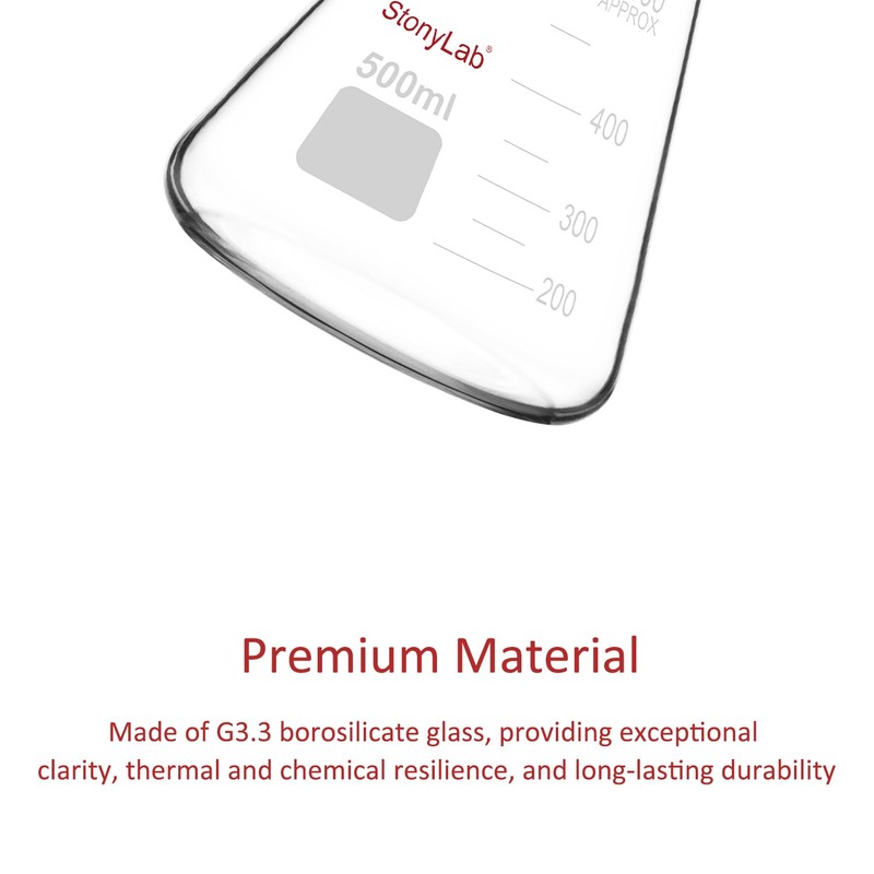 • MULTIPURPOSE USAGE Erlenmeyer flask for making and storing chemical solutions, essential in chemistry, biology and various scientific disciplines