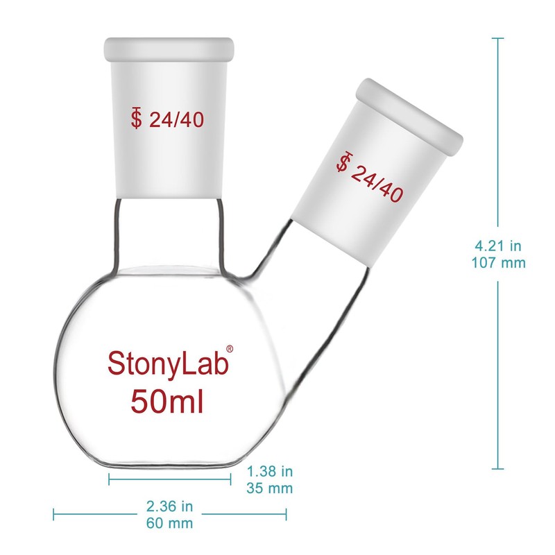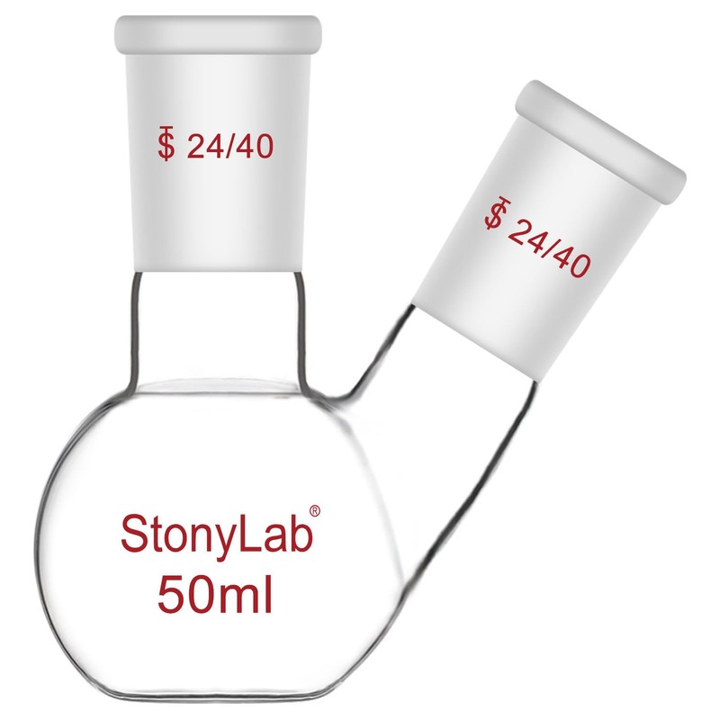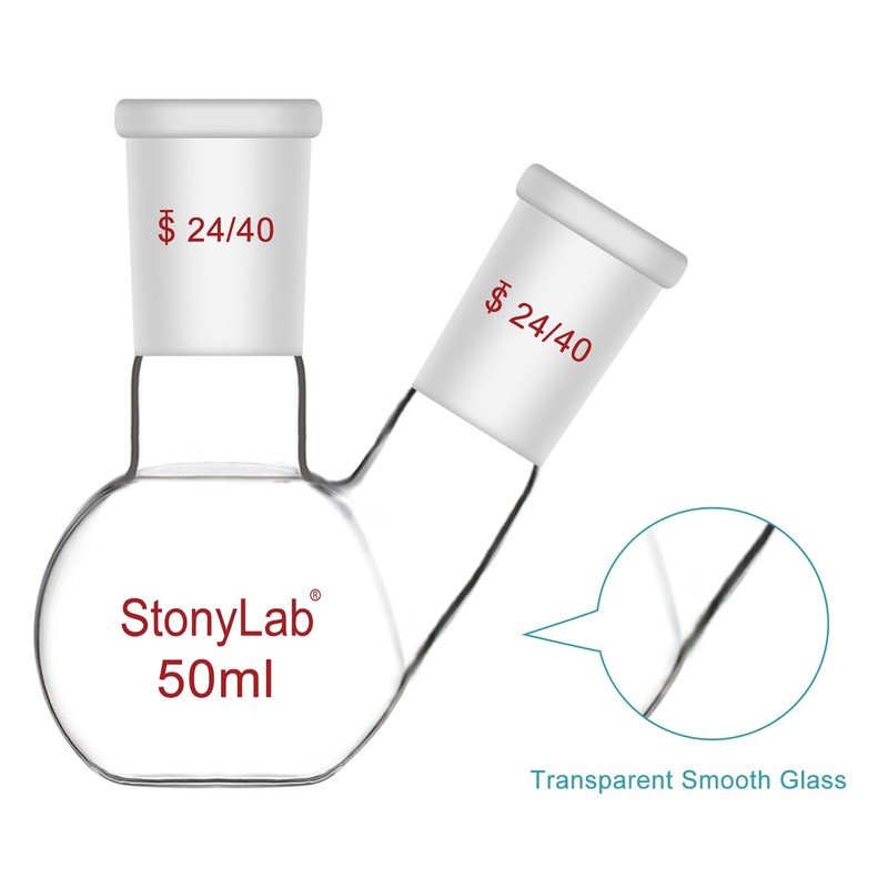 stonylab Flat Bottom Flask FBF, Heavy-Walled 2-Neck Laboratory Flask Borosilicate Glass Flat Base Boiling Piston with 24/40 Standard Joint, 50 ml