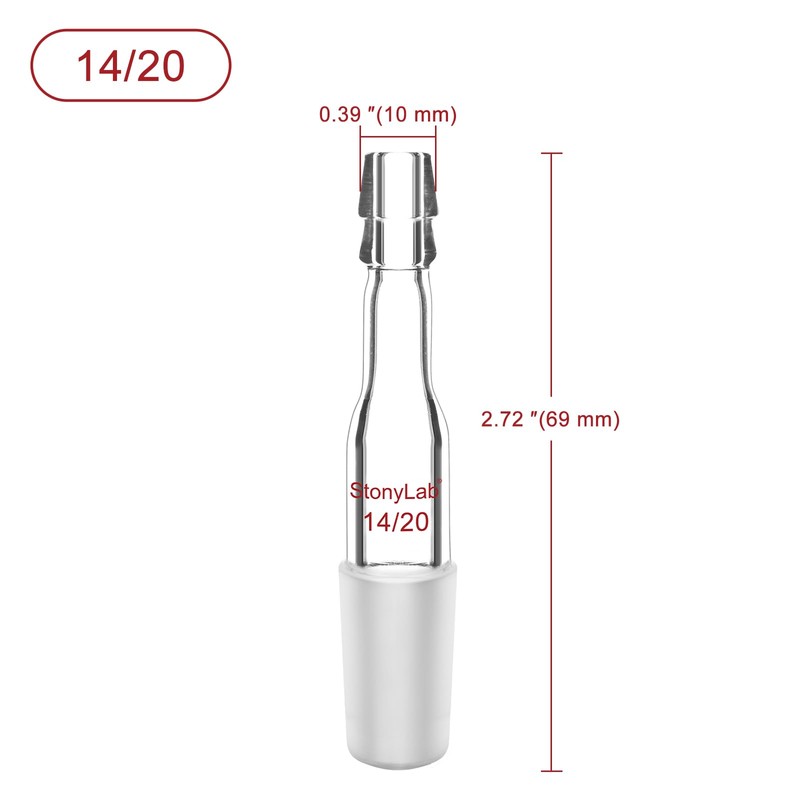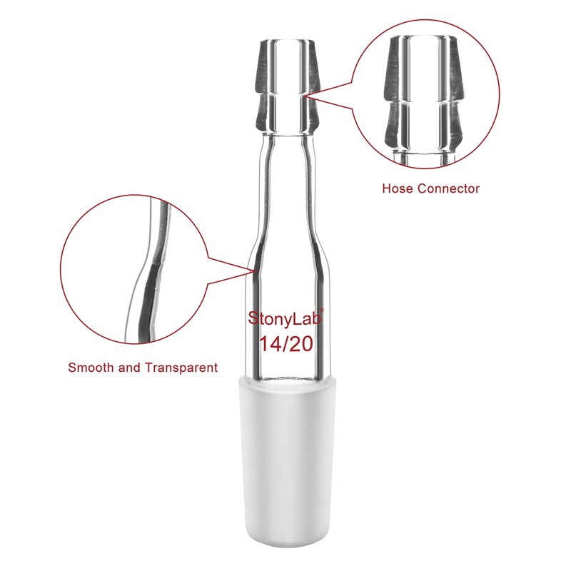stonylab Glass Inlet Adapter, 1 Pack Borosilicate Glass Straight Inlet Adapter with 14/20 Joint and Hose Connection Lab Glassware