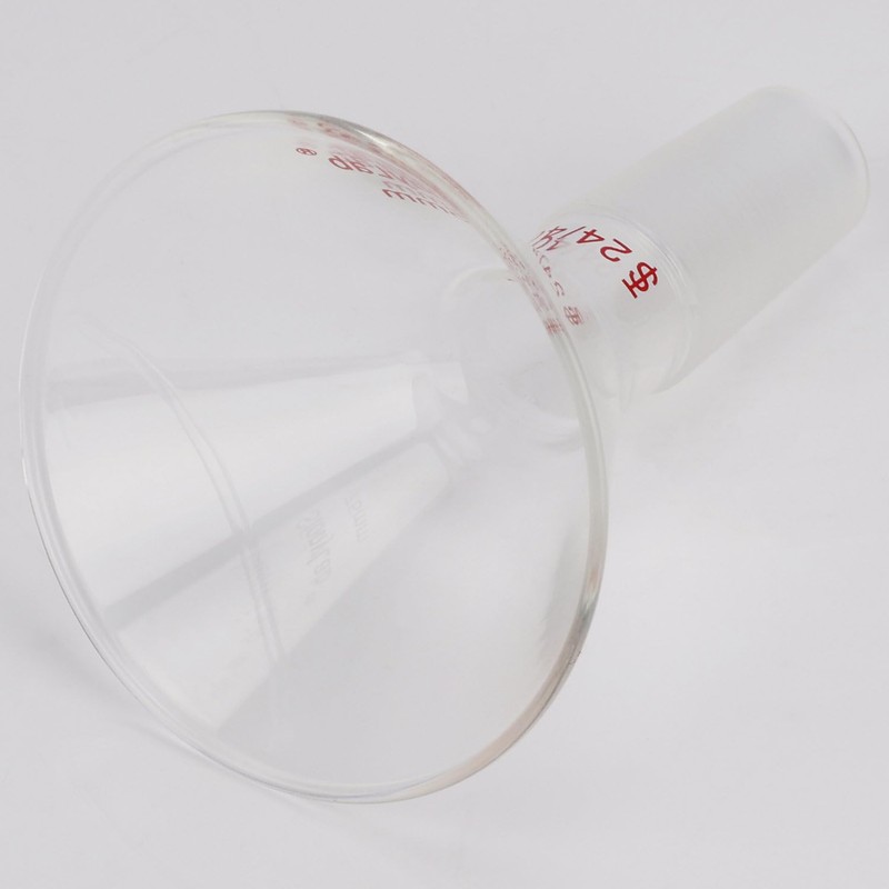 • This funnel is made of glass with high borosilicate content and offers high hardness, corrosion resistance and low thermal expansion coefficient. Ideal for handling a variety of chemicals and temperature fluctuations during your laboratory work; maximum temperature resistance 200°C