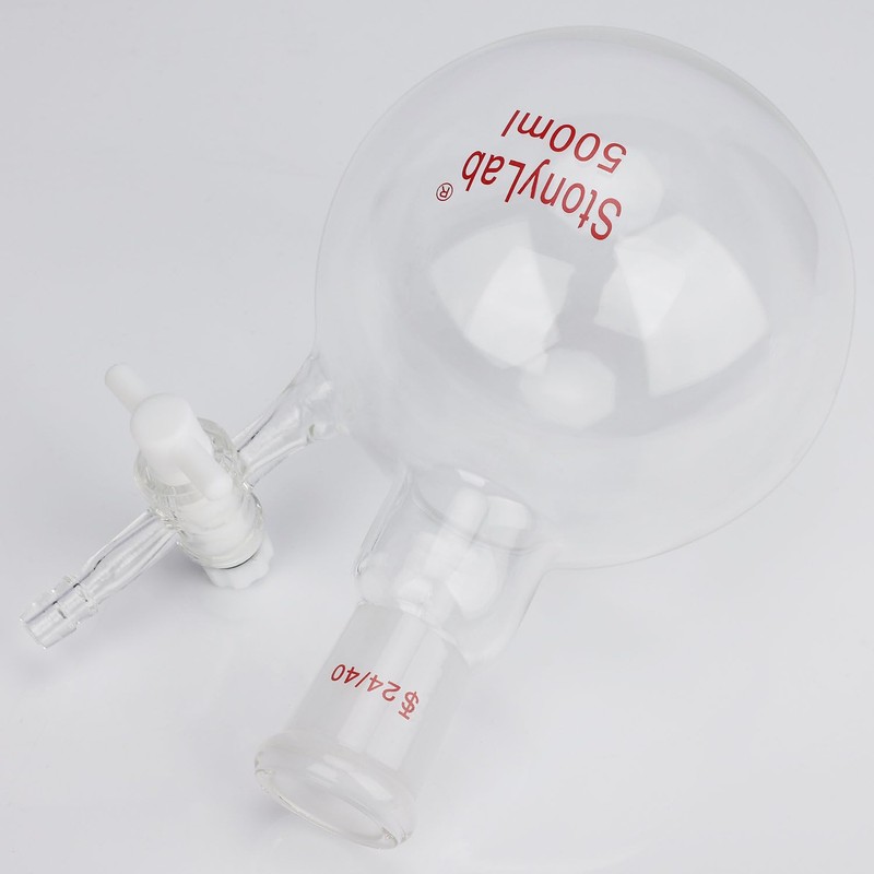 - Premium Construction: constructed with a borosilicate glass body and a PTFE piston, this flask features a 24/40 ground glass joint and an 8mm hose connection, ensuring compatibility with StonyLab's other glassware equipment