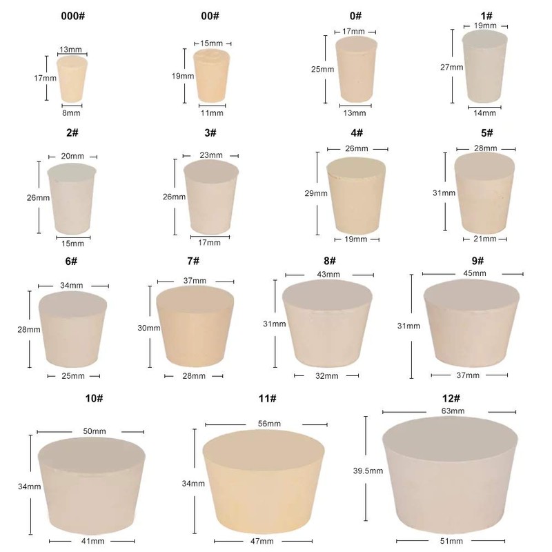 stonylab Solid Rubber Stopper, Pack of 10, 2# - 15 mm x 20 mm x 26 mm - White Tapered Laboratory Seal Rubber Stopper