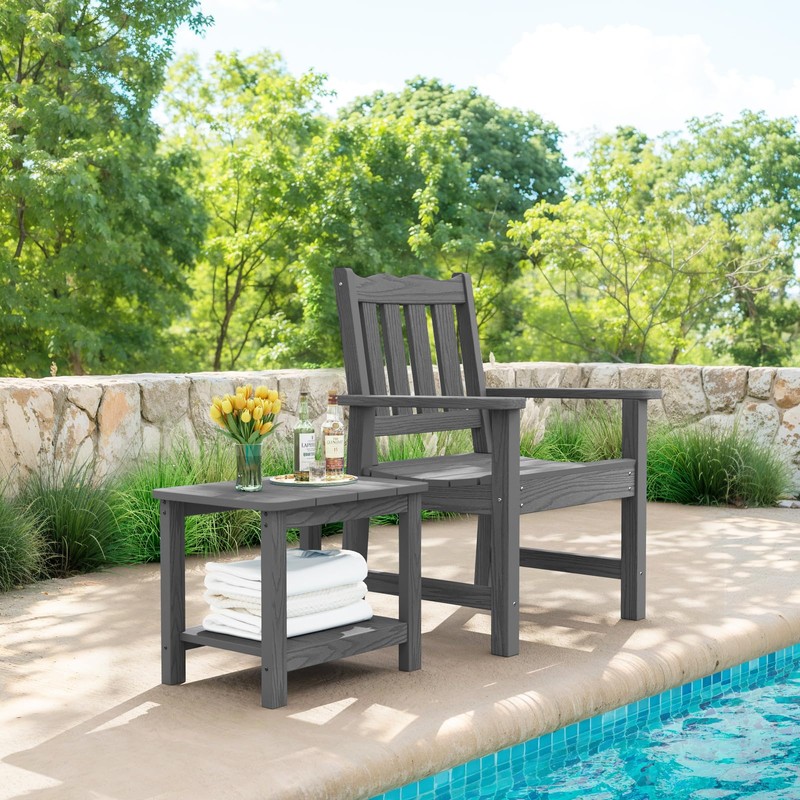 Stoog All-Weather Patio Side Table, 2-Tier Rectangular Outdoor Side Table, Adirondack Side Table, Easy Maintenance, Grey