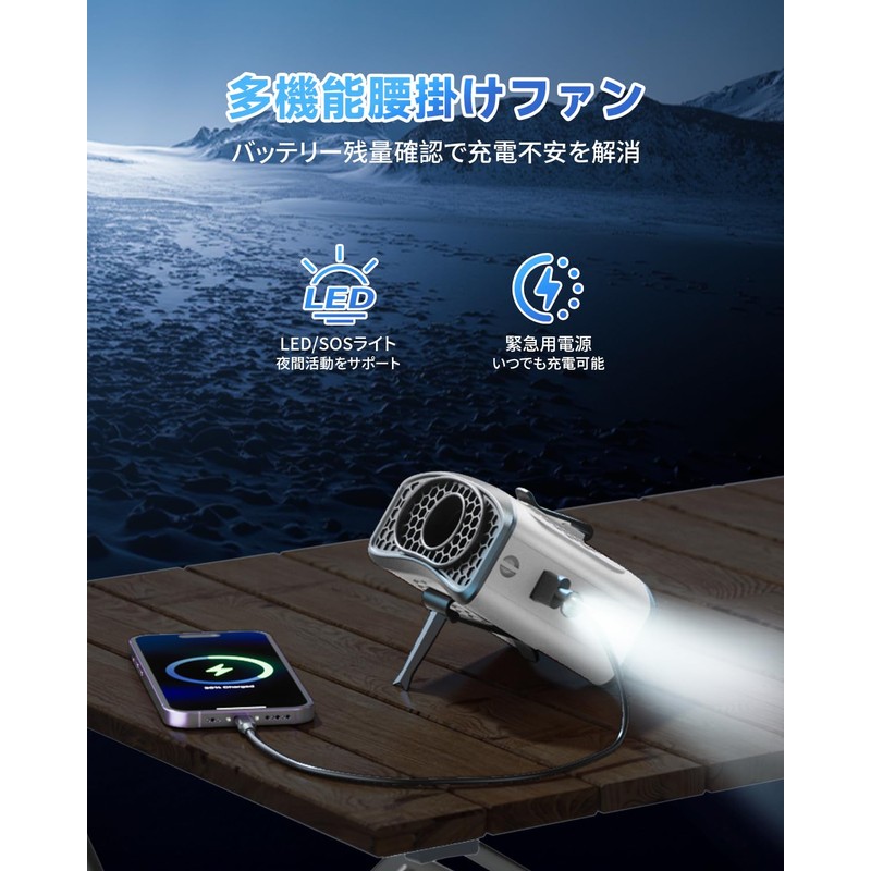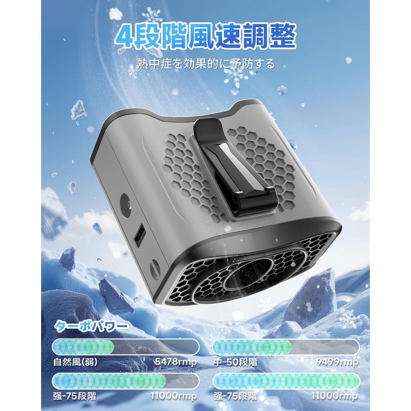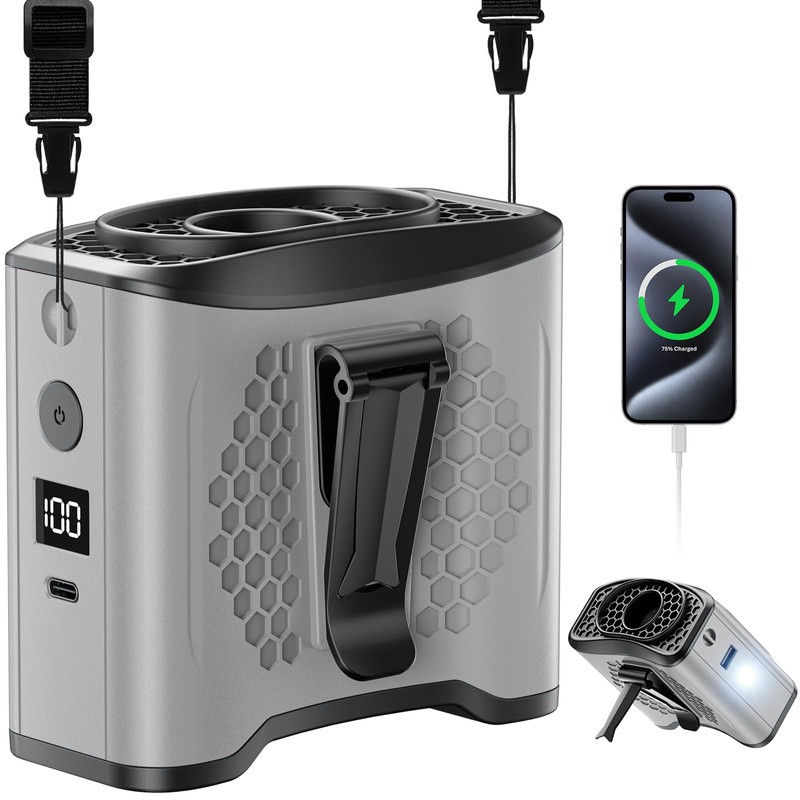 - This seat fan is a high performance model that stands out from the traditional compact belt fan. Adopts state-of-the-art high-speed brushless motor, much stronger wind power than ordinary motors, and has a longer lifespan of 5 years. Especially noteworthy is the bottom air intake design to prevent the garment from blocking the intake vents and always provide a stable strong wind. This design is very important in maintaining your work efficiency. In addition, it has a SOS lamp and high-brightness flashlight, so you can use it at night or in emergencies