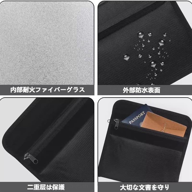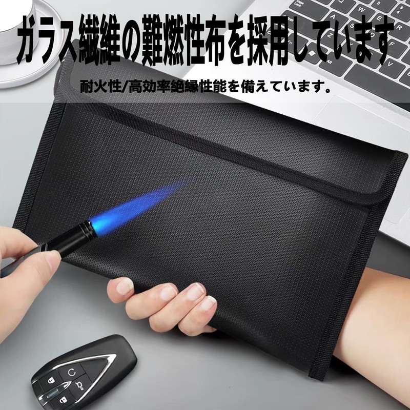 Stoooduo Fireproof Bag, Fireproof Case, 7.9 x 4.7 inches (20 x 12 cm), Black, Fireproof Bag, Fire Retardant Safe, Zipper Type, Explosion-Proof, Waterproof, Disaster Prevention, Fireproof Bag, Cash