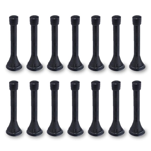 Stop Door Stopper, Spring Door Stop, 14-Piece, with Safety Rubber Bumper, Including Screws and Bottom Plate, to Prevent The Door from Colliding with The Wall (Black)