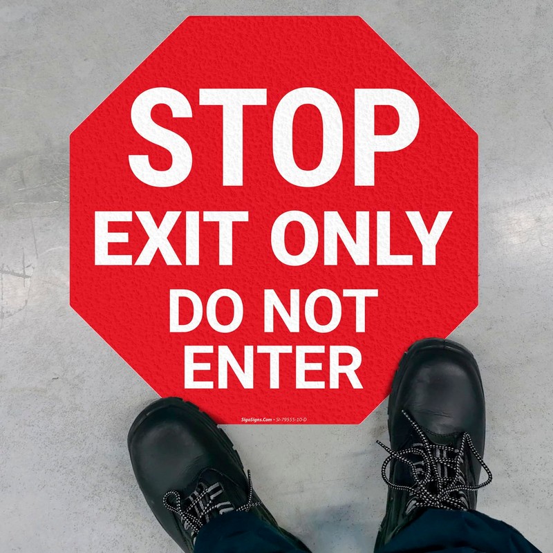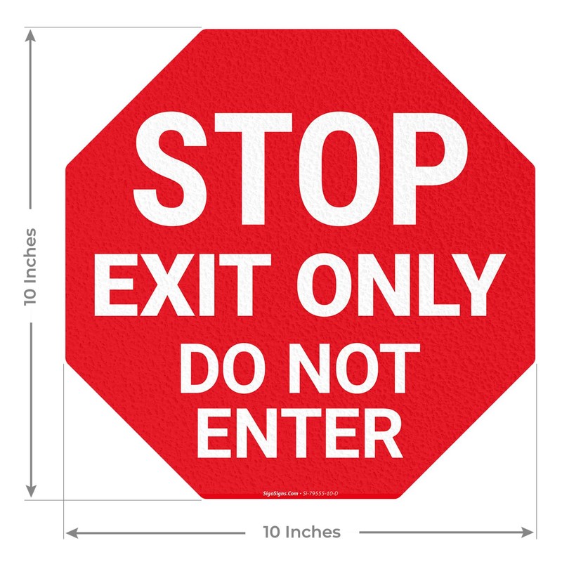 Stop Exit Only Do Not Enter 10x10 inches, Floor Decal Anti-Slip Adhesive Floor Sign Made in USA