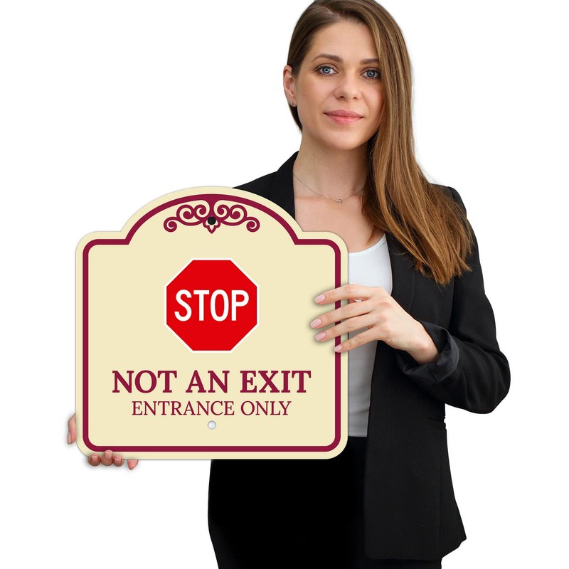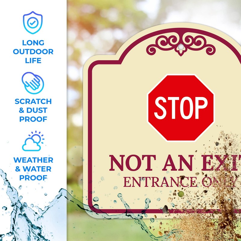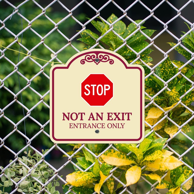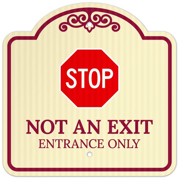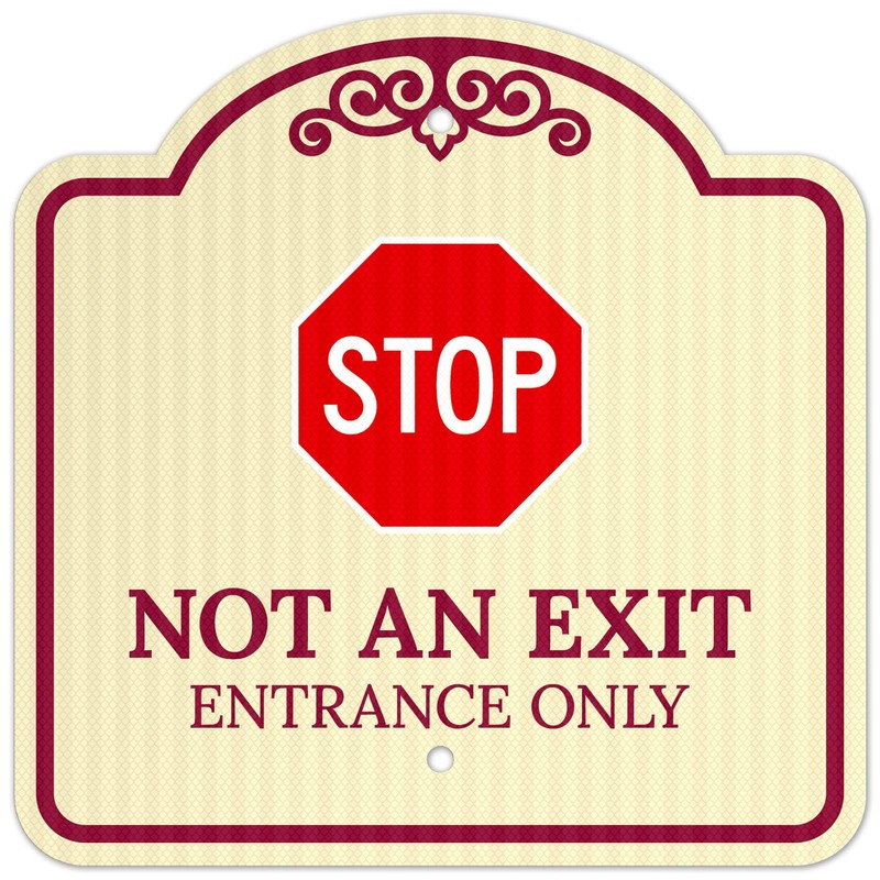 Stop Not an Exit Entrance Only Décor Sign, Burgundy Light, 12x12 Inches, Rust Free .063 Aluminum, Fade Resistant, Made in USA by Sigo Signs