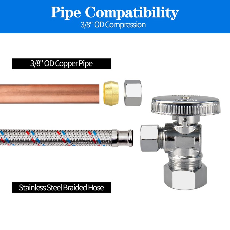 • 【Easy to Connect】- 1/2" nominal inlet is very easy to connect with 1/2" stainless steel bellow, braided hose and 1/2" NPT female thread copper pipe. 3/8" OD compression outlet is easy to connect with 3/8" stainless steel braided hose and 3/8" copper pipe.
