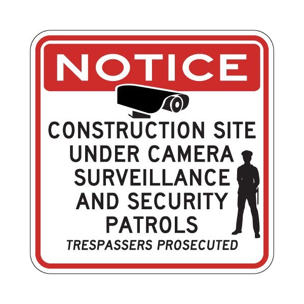 - Construction Site Under Video Surveillance Signs constructed of rust-free, heavy gauge, durable aluminum