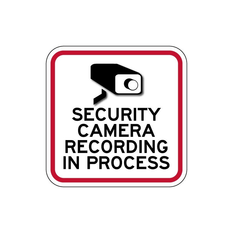 - Security Camera Recording Sign constructed of rust-free, heavy gauge, durable aluminum