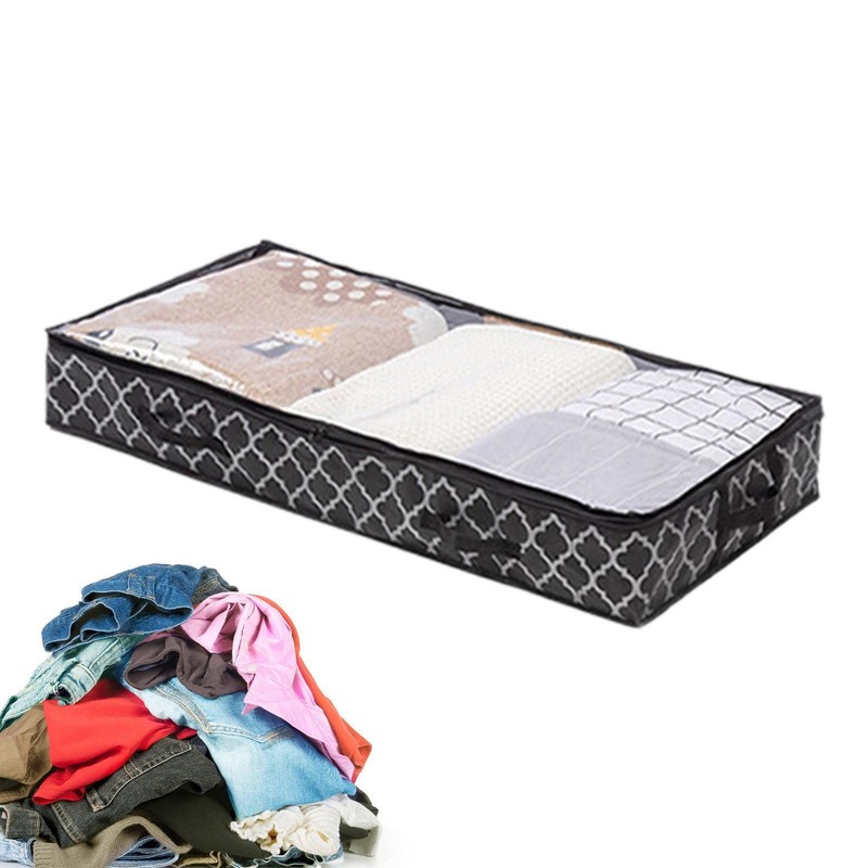 Storage - 80l Under Bed Fabric Storage Container Bags with Clear Window,Storage Bins for Under Bed with 4 Reinforced Handles for Clothes, Blankets, Shoes, Pillows Welts