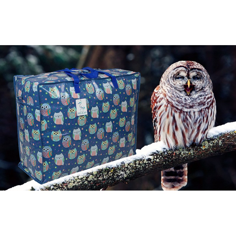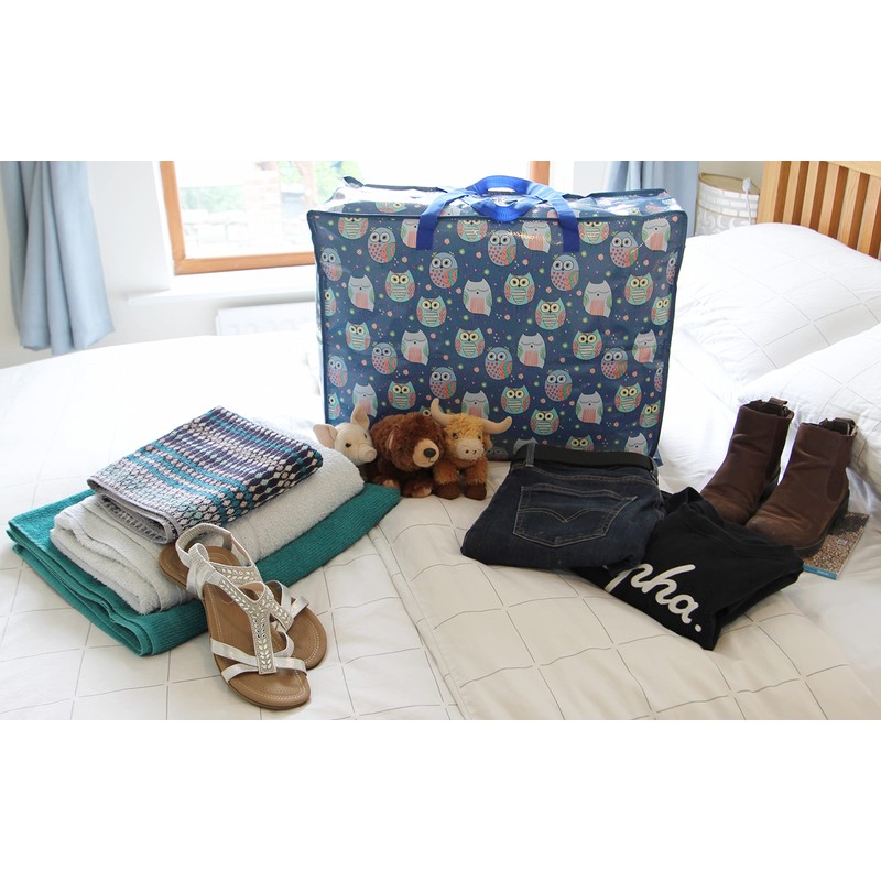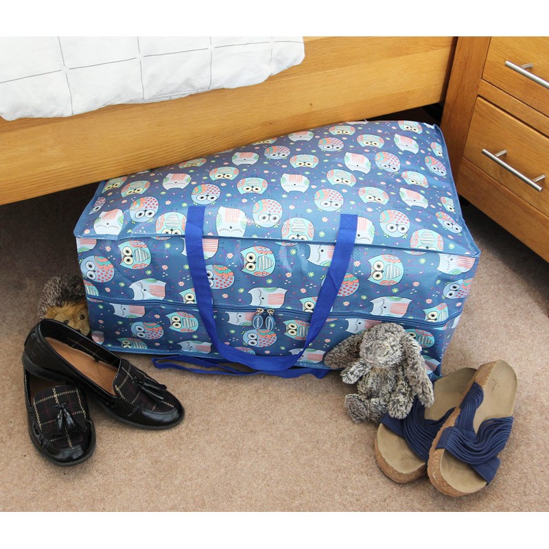 Storage Bags Water & Dust Resistant. Double zipped storage bags for toys, laundry, bedding. Underbed Wardrobe Space Saver Sleepy Owls print (65 ltr 2x Pack)
