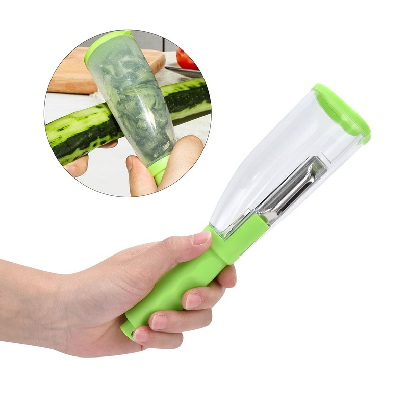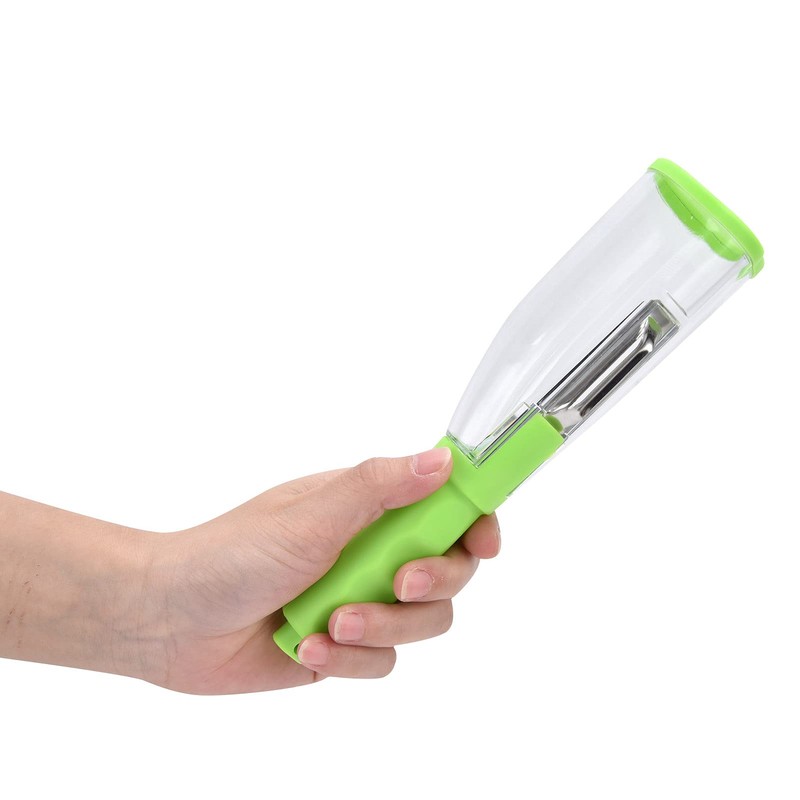- [MESS PEELING] Equipped with an integrated trash can this peeler ensures that peels are neatly collected and do not scatter on the floor. Use it in your living room bedroom or office without worrying about making a mess.